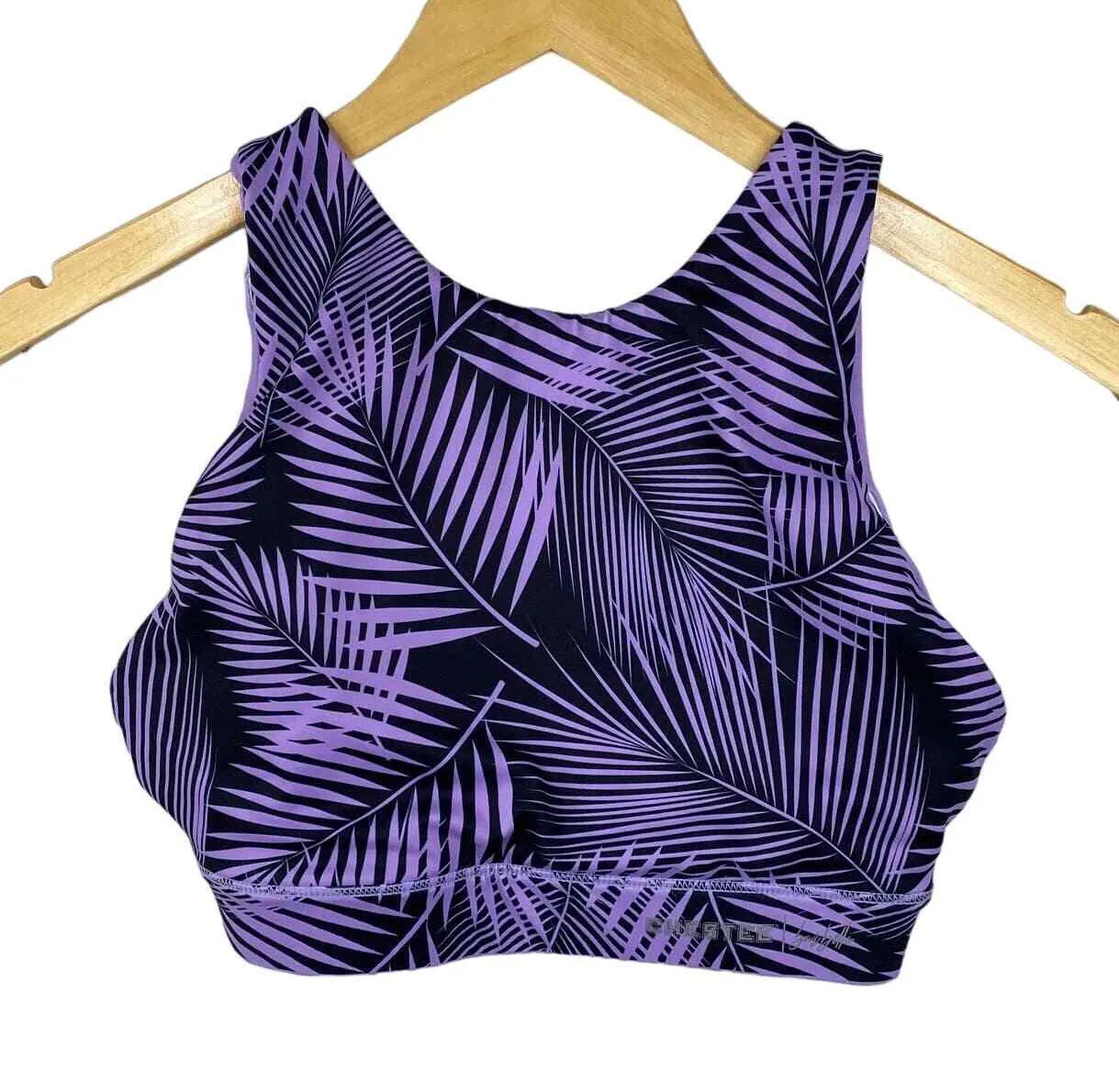 Purple & black. Rich lilac on one side & winter tropics on the other Wide, full coverage front Four under over back straps Open horizontal support panel High impact collar bone protection (great for cleans/thrusters/etc) which is also removable Removable cups