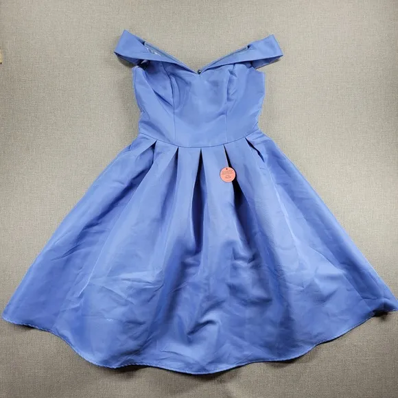 Chi Chi London Womens Dress Size 8 Light Blue Marlie Off-shoulder Cocktail NEW Product Description: Measurements: 16" pit to pit x 34" long - Brand: Chi Chi London - Condition: New With Tag - Fold-over sleeve detailing - Ssweetheart neckline - Fitted bodice - Pleated skirt - Fabric Content: 100% Polyester - Color: Light Blue Thanks for shopping with me today! I ship on orders received by 3pm each day. Most items are lovingly used and therefore show appropriate signs of wear. I do my best to make note of any irregularities with *. Please feel free to inquire