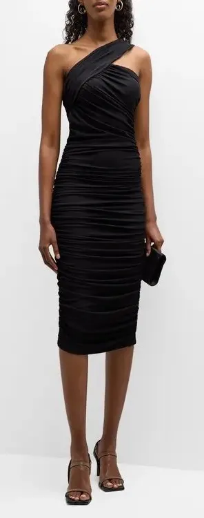 CHIARA BONI LA PETITE ROBE Tazia Ruched One-Shoulder Bodycon Midi size 38 - S Black - $250 - From Melissa