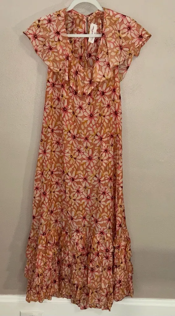 Chic Floral SUNDRESS Maxi daisys Dress in Pink and Orange ruffle hem Size undefined - $45 - From Kimberly