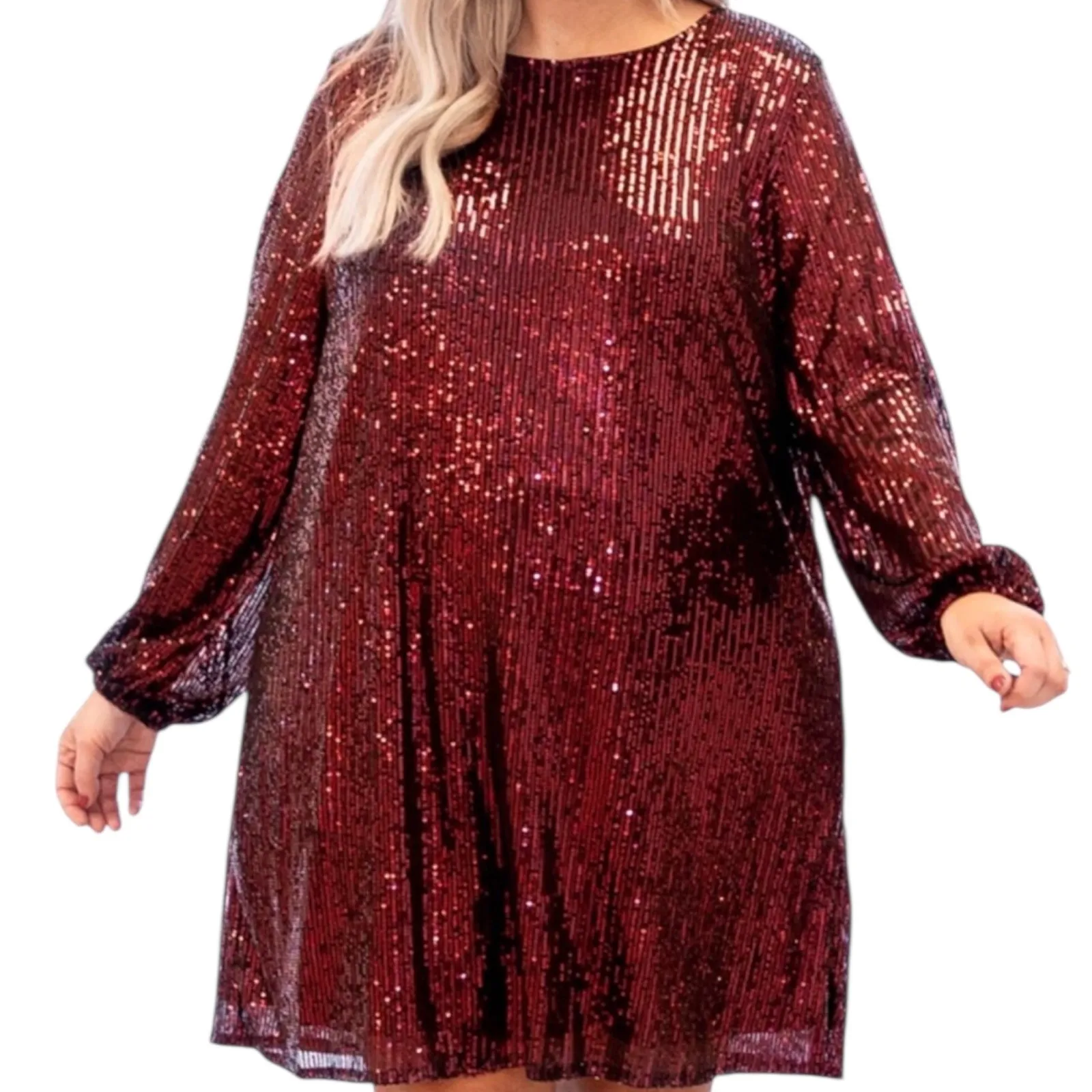 Chic Soul Red Sequin Long Sleeve Party Cocktail Shift Dress. Plus Size 1X. 100% polyester. *Please s... Show more