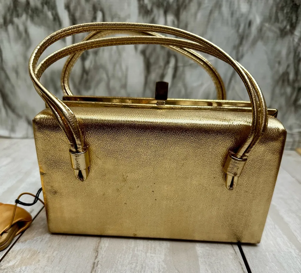 Chic Vintage Hollywood Glam Gold Clutch Dual Handles Kiss-lock Box Bag Handbag - $38 - From Jennifer