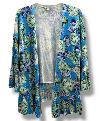 Chico's Blue Yellow Shell Print Linen Blend Cardigan - 2 or L - Open Front GENERALLY SHIP SAME OR N... Show more