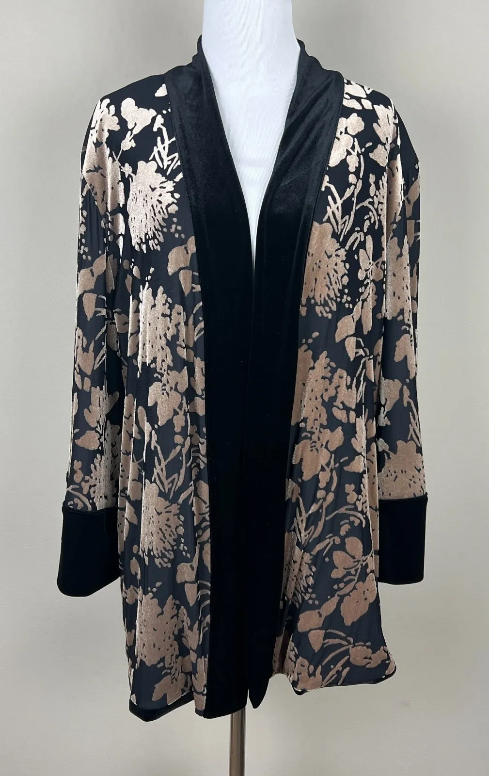 Chicos 2 Travelers Cardigan Kimono Jacket Topper Womens 12/14 Velvet Burnout Open Reversible L Large... Show more