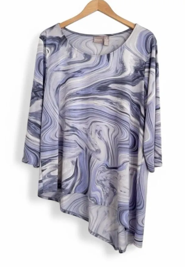 Chicos Abril Blouse Womens 3 (XL) Swirling Purple Asymmetrical Hem Top Excellent condition: No fla... Show more