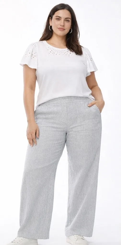 Chico’s Amelia Stripe Pant crafted from a lightweight stretch linen blend in a soft gray micro-strip... Show more