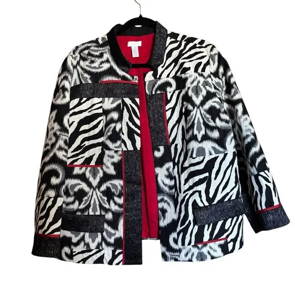 This Chico's Women's Blazer in size XL features a bold and artsy metallic giraffe print design, maki... Show more