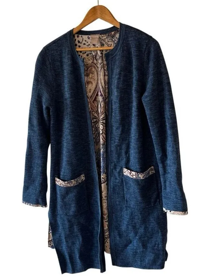 Brand: Chico’s Color: blue & brown Condition: like new Material: 89% cotton 9% nylon 2% spandex... Show more