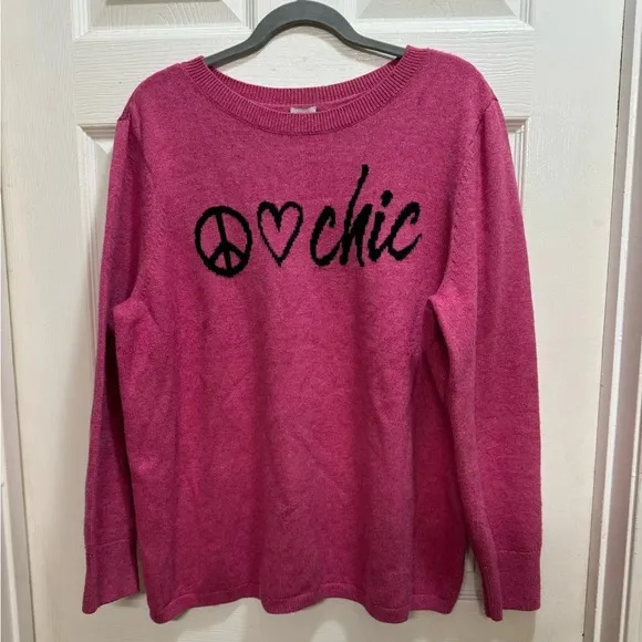 This is a listing for a preowned Chicos Cashmere-Blend Peace Love Chic Sweater Long Sleeve Hot Pink... Show more