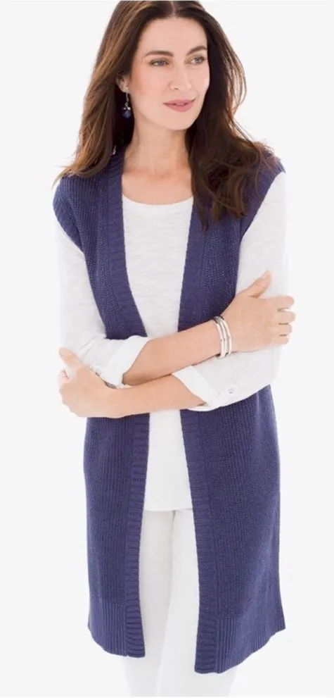 Chico’s Lace Back Maureen Sleeveless Sweater Vest Blue NWT Sz 3/US XL 570181760. Beautiful sweater b... Show more