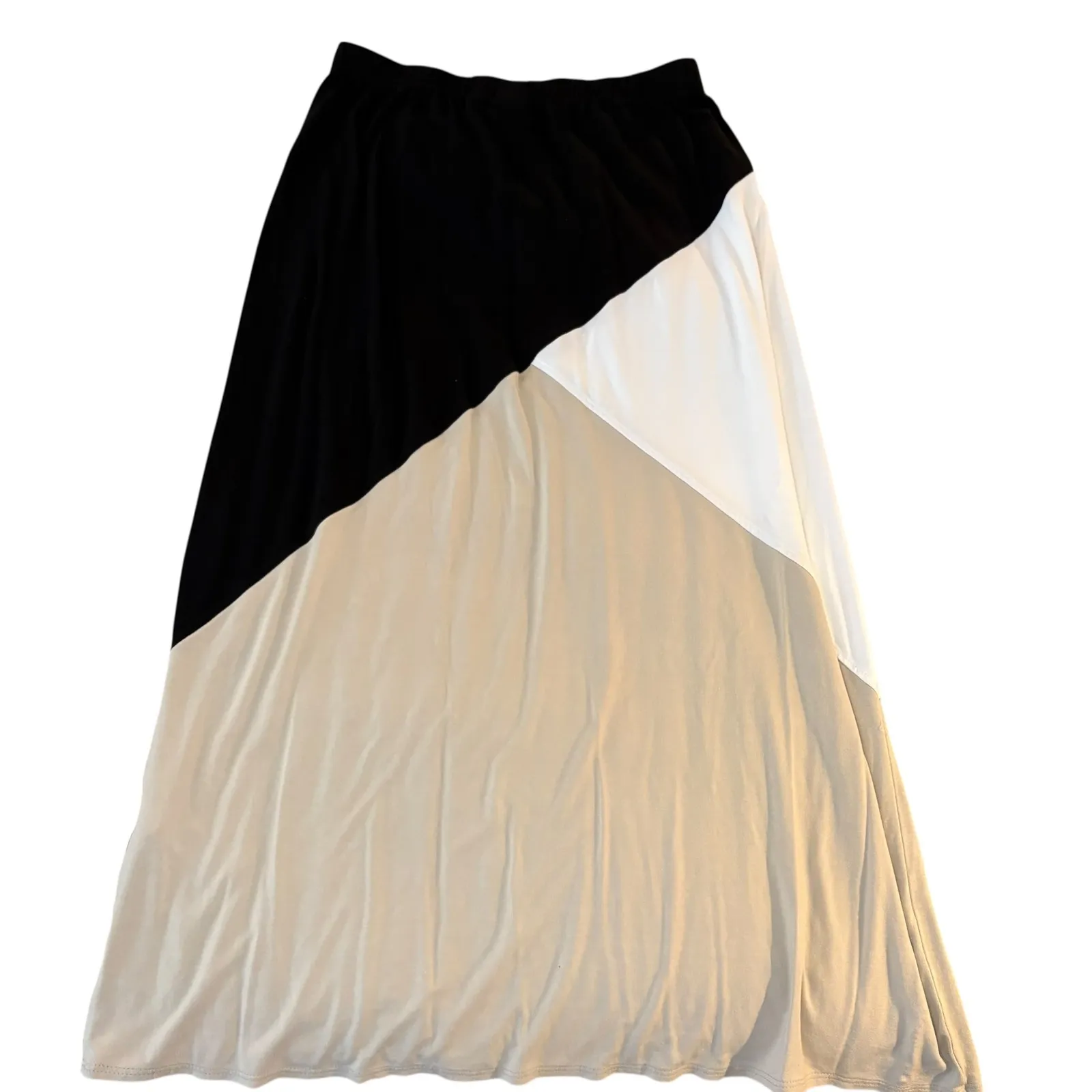 Striking color blocking lends a modern edge to this comfortable maxi skirt. A versatile piece that p... Show more