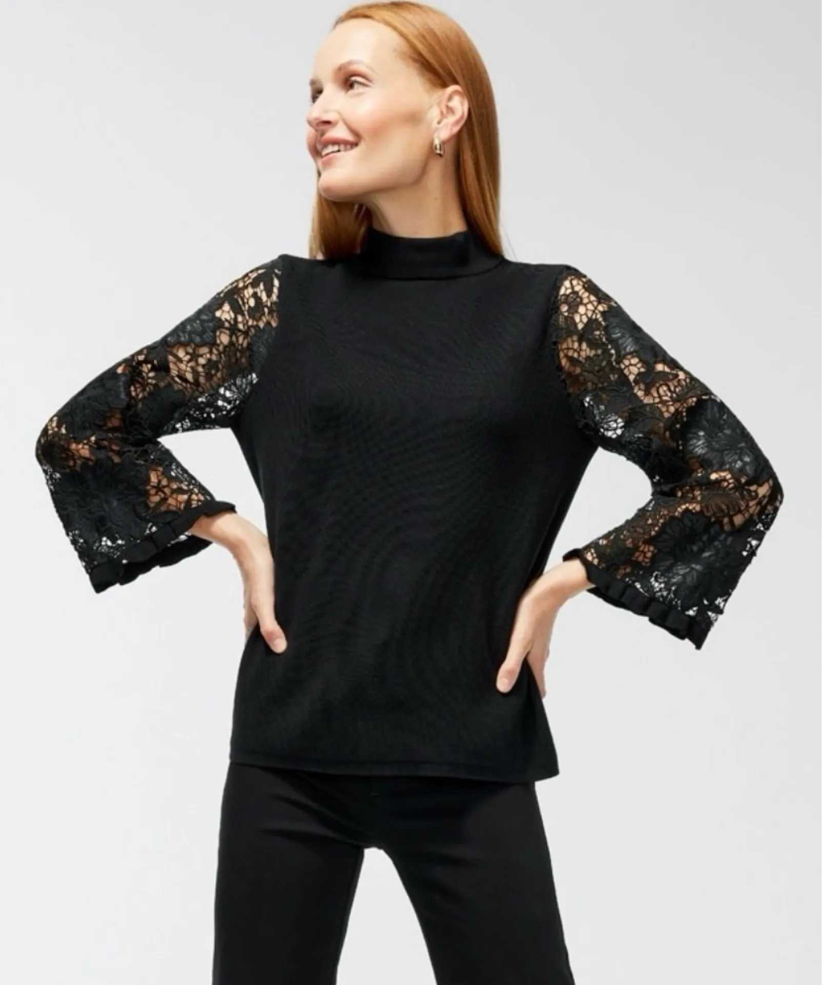Chico’s Mock Neck Knit Lace Bell Sleeves Pullover Sweater Size 4 (XXL) Feminine Back top zipper cl... Show more