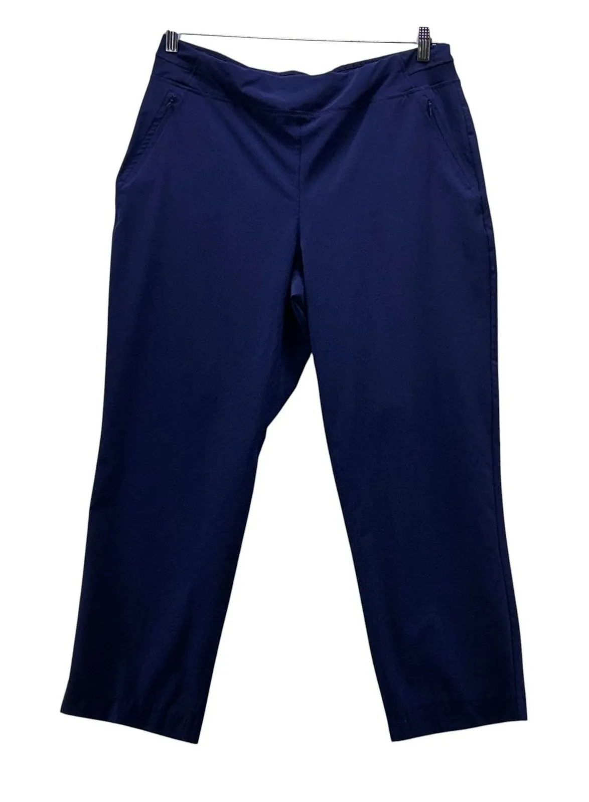 Discover unparalleled comfort and freedom in these navy blue performance hiking pants from Chicos. D... Show more