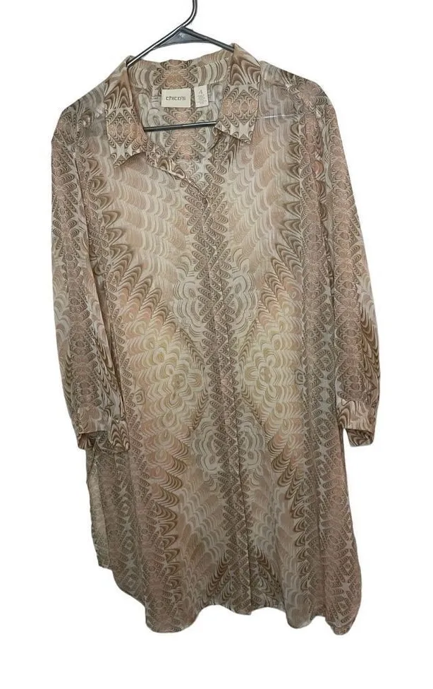 Preowned with no flaws size 4 ( XL) in chicos size . Soft colors of white, beige,taupe and peach, ve... Show more