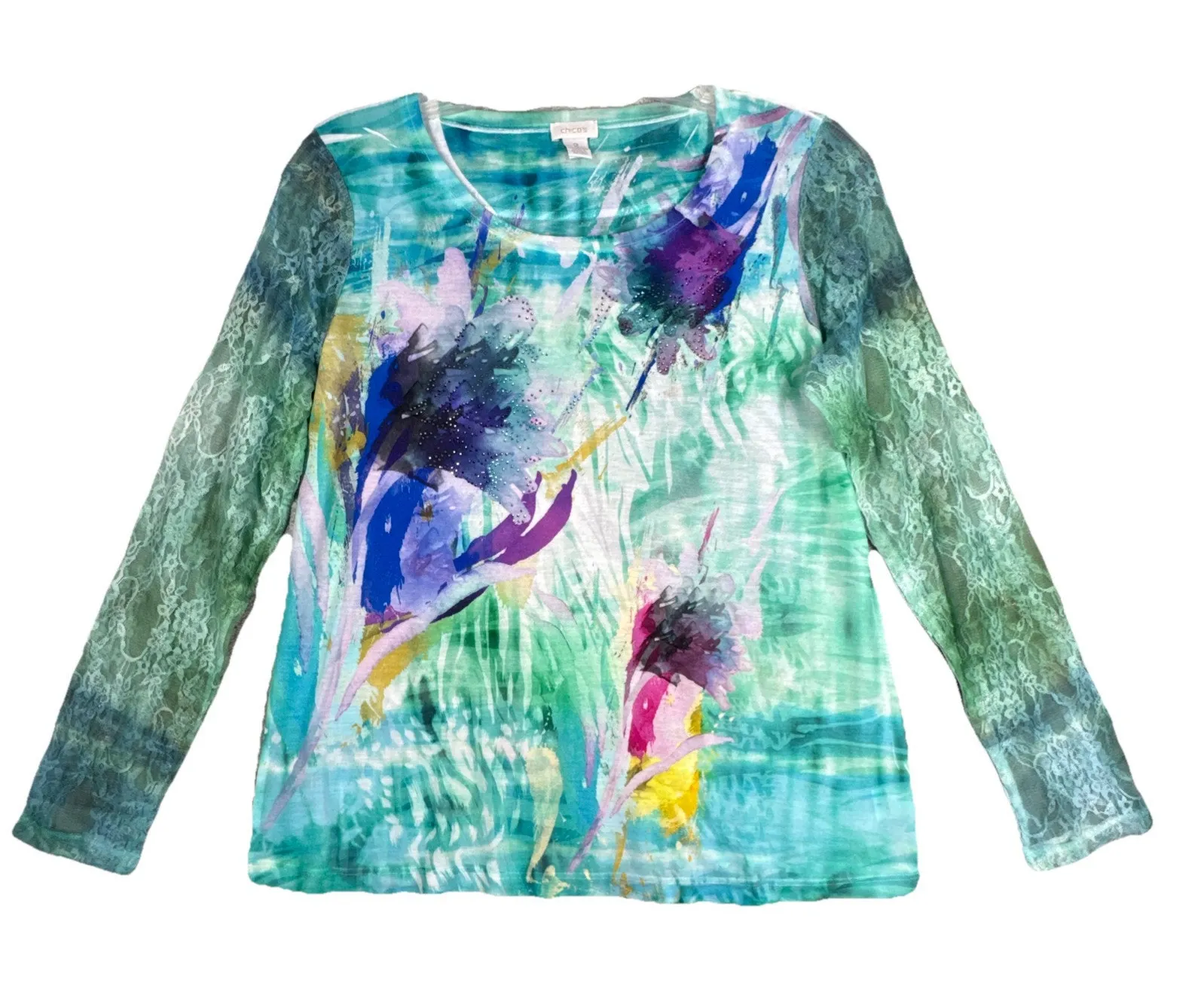 Chicos Shirt Womens Large Green Blue Watercolor Brushstroke Colorful Beaded Women’s Size Large (Chi... Show more