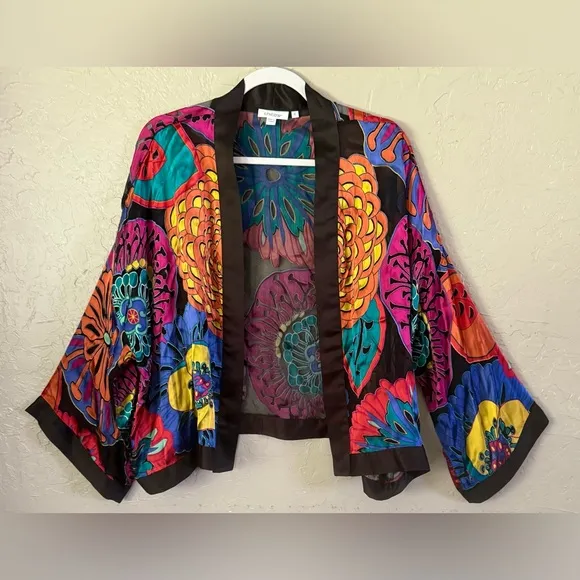 This Chicos Silk Blend Burnout Cropped Jacket Cardigan in Flame Scarlet is a versatile and stylish a... Show more