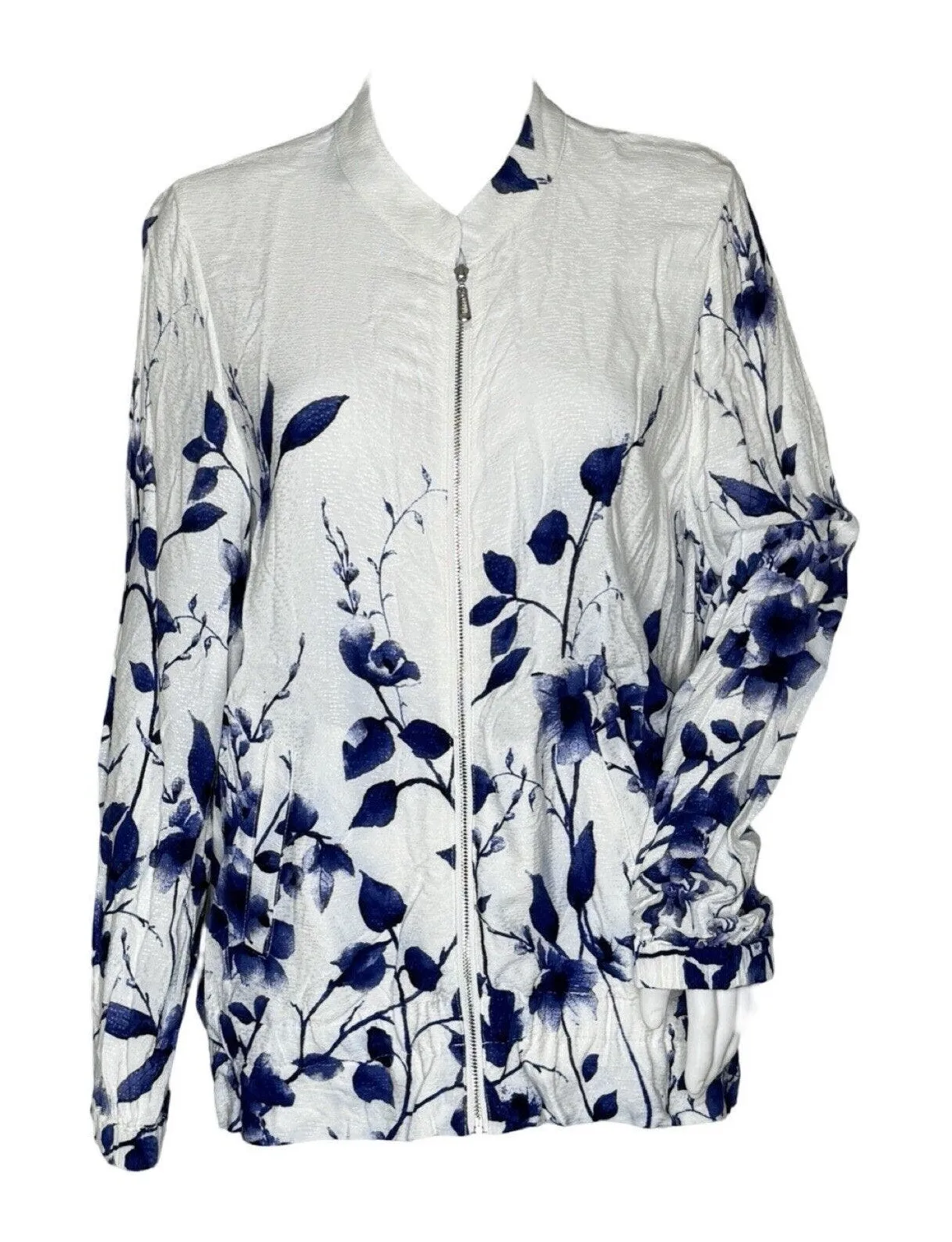 Chicos Sweater Womens Medium White Blue Floral Zip Up Cardigan Office Casual Women's Size Medium (1... Show more