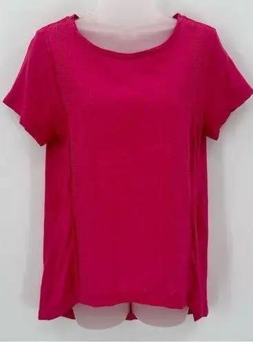 by Chicos Tee in size Chicos is similar in size to US Womens Small. Dark Pink hue top has rounded n... Show more
