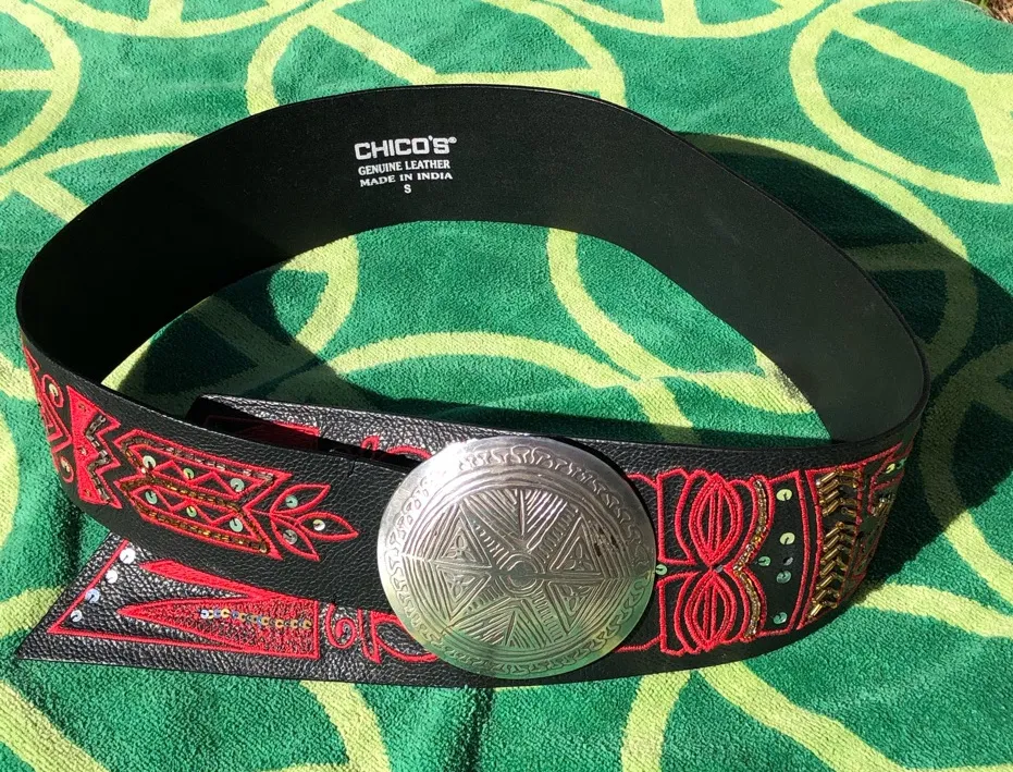 CHICO’S Tiki Embroidered/sequin Leather Wrap Belt S Black - $35 - From Christine