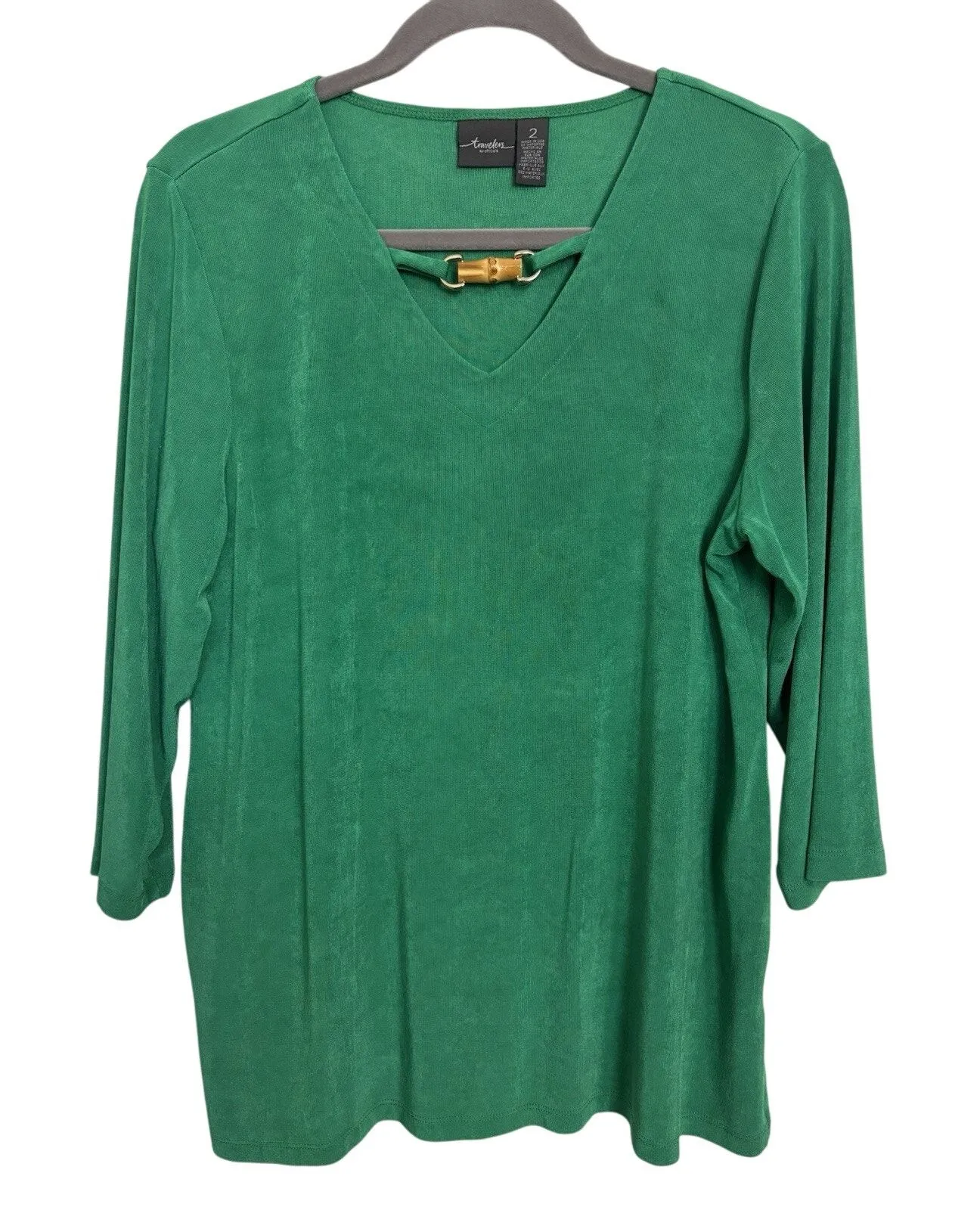 Chico’s Travelers Women’s Size 2 Large Kelly Green Top V Neck with Bamboo Trim 3/4 Length Sleeve... Show more