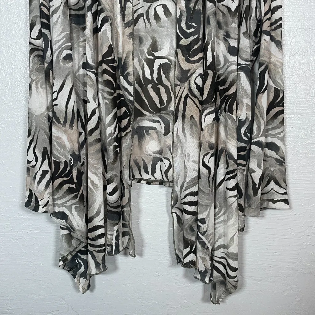 Chicos Women 3/ XL White and Black with Metallic Gold Cardigan Tiger Animal Print, sheer knit, Op... Show more