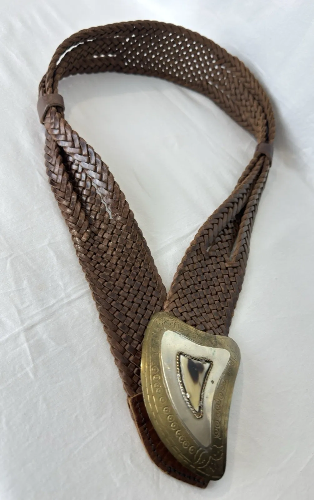 Chico’s women’s belt, size S/M, Morocco brown. Made of high-quality braided leather, with a metal bu... Show more