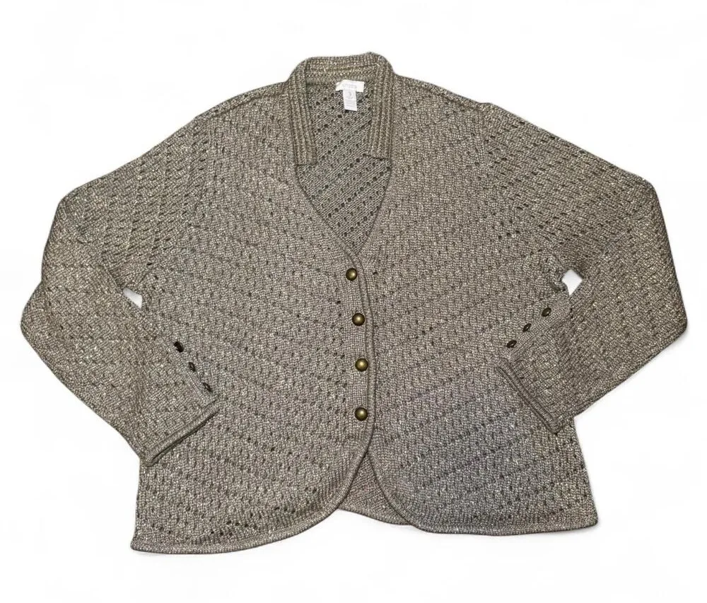 Button Front Add a touch of shimmer to your wardrobe with this elegant Chico’s women’s cardigan blaz... Show more