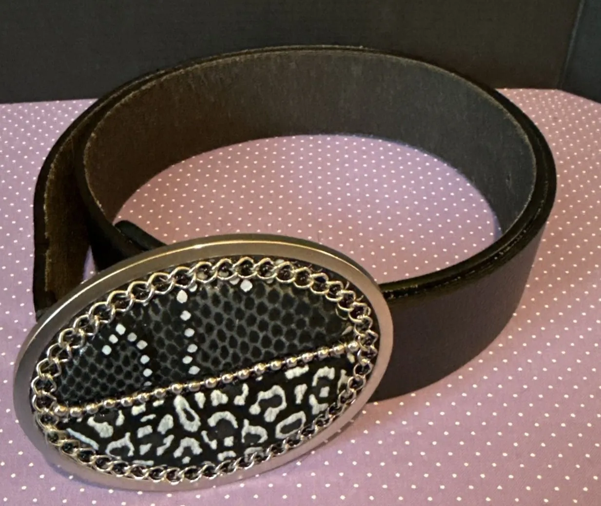Chicos Womens Medium Animal Print Embossed Buckle Leather Belt Preppy Career‎ - $25 - From Andrea