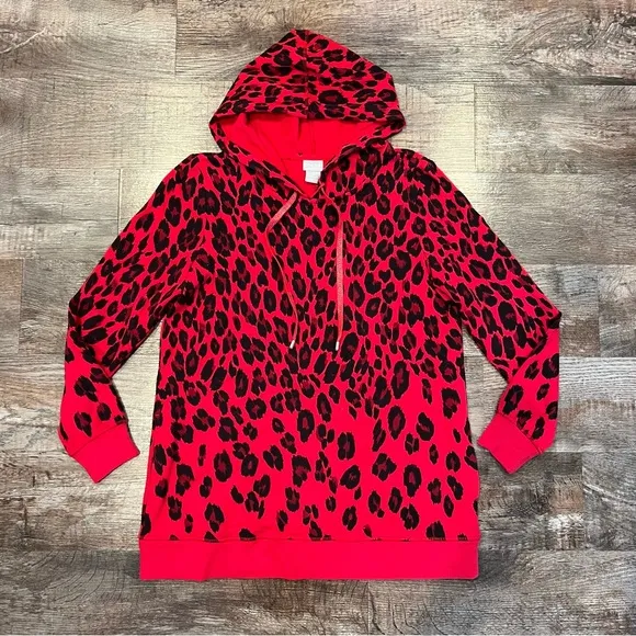 Excellent condition cheetah print hoodie from Chicos. Part of their athletic zenergy line. Soft, str... Show more