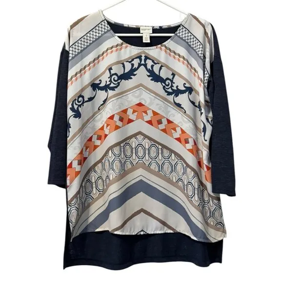 This shirt is preowned and in great used condition! Chicos Zenergy Women Top Size 1 Abstract Lig... Show more