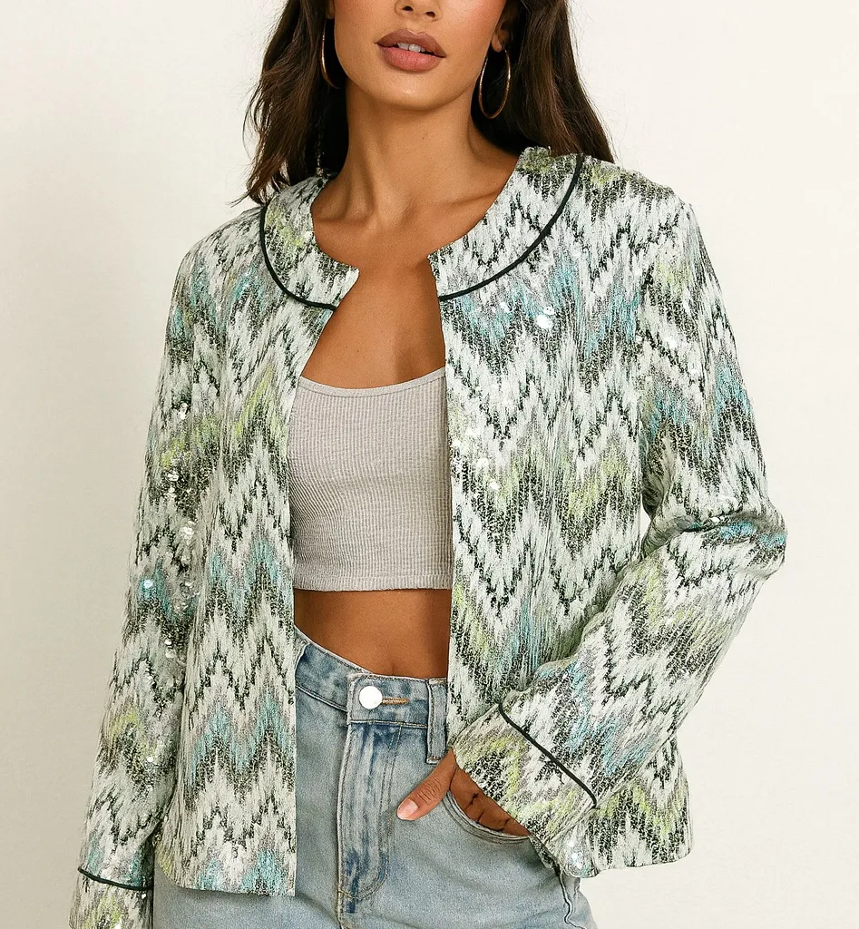 NWOT- NEW WITHOUT TAG! Chico’s sequin Jewel Seascape Multicolor blazer jacket Versatile Chevron Seq... Show more