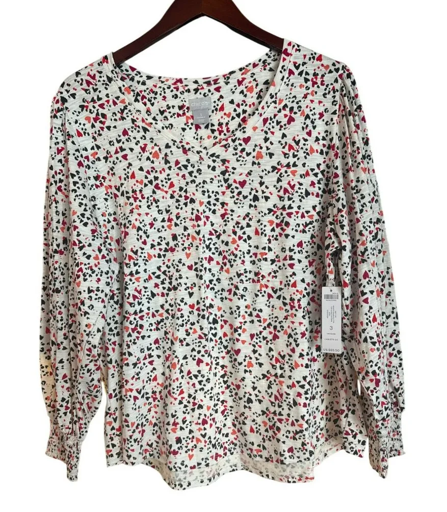 Chico's Size 3 which is equal to a size XL Lightweight and breathable V-neck top with a charming h... Show more