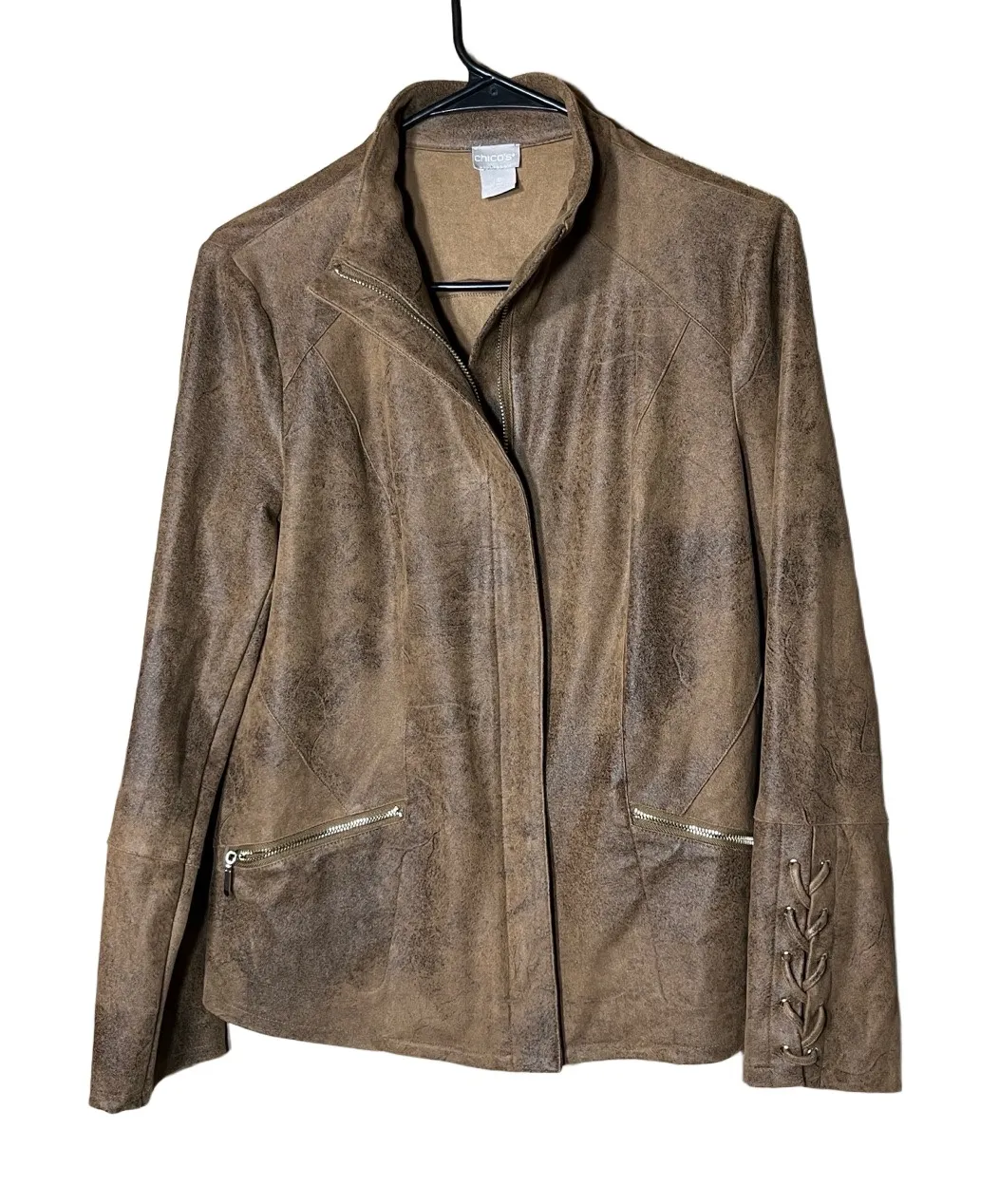 Chico's Moto Jacket Womens Size 4/6 Brown Distressed Faux Suede Lace-Up Cuffs Vintage Condition: Go... Show more