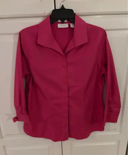 Brighten your wardrobe with this vibrant Chico's No Iron cotton shirt. Feel the luxurious softness a... Show more