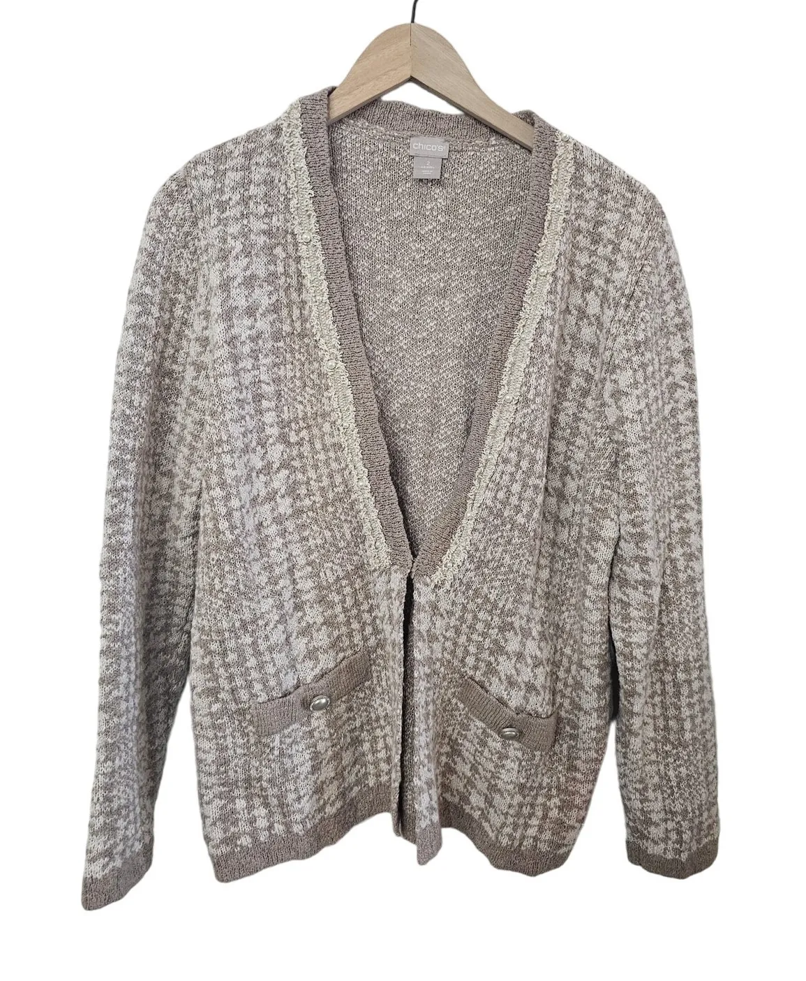 Chico's Novelty Yarn Detail Cardigan Sweater Womens Large Taupe Heather Neutral Measurements: Size... Show more