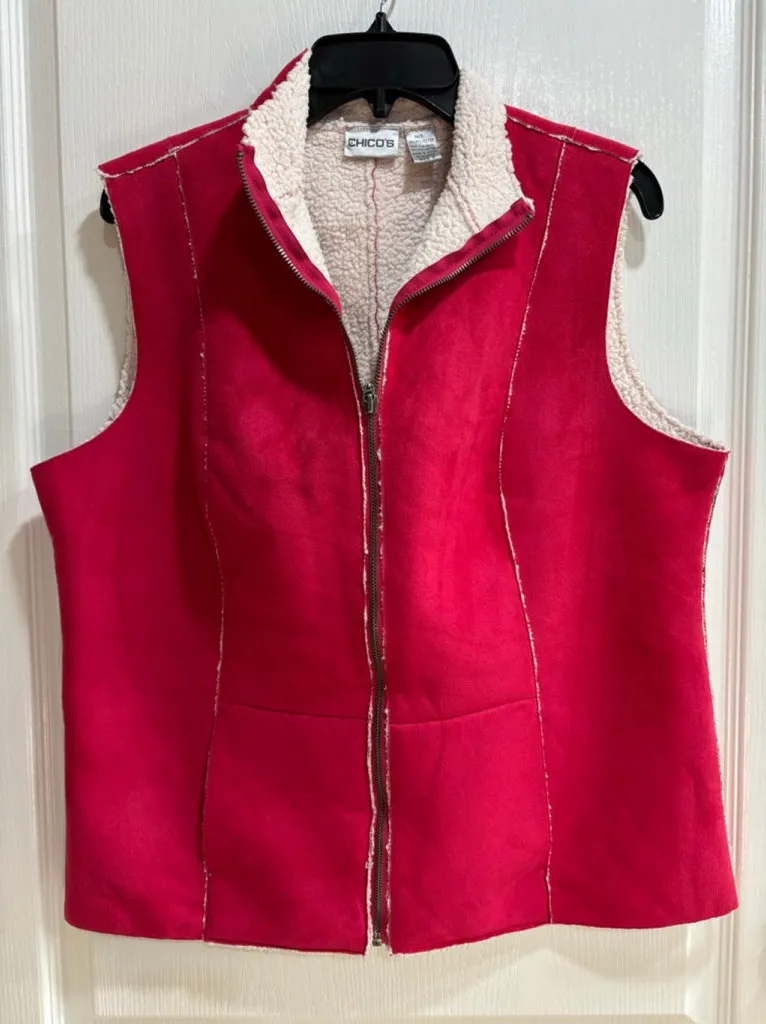 Chicos Women’s Pink Vest, Sherpa Lined, Faux Suede, Full Front Zipper, 2 Front Pockets, soft, warm,... Show more