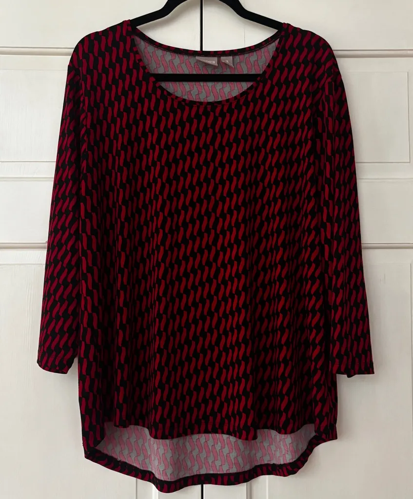 This chic tunic from Chico's features a relaxed, boxy fit with a high low hem (measurements below) w... Show more