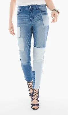 Chico's So Slimming Petite Indigo Patchwork Girlfriend Ankle Jeans Size 2 NWOT Never Worn Inseam 25... Show more