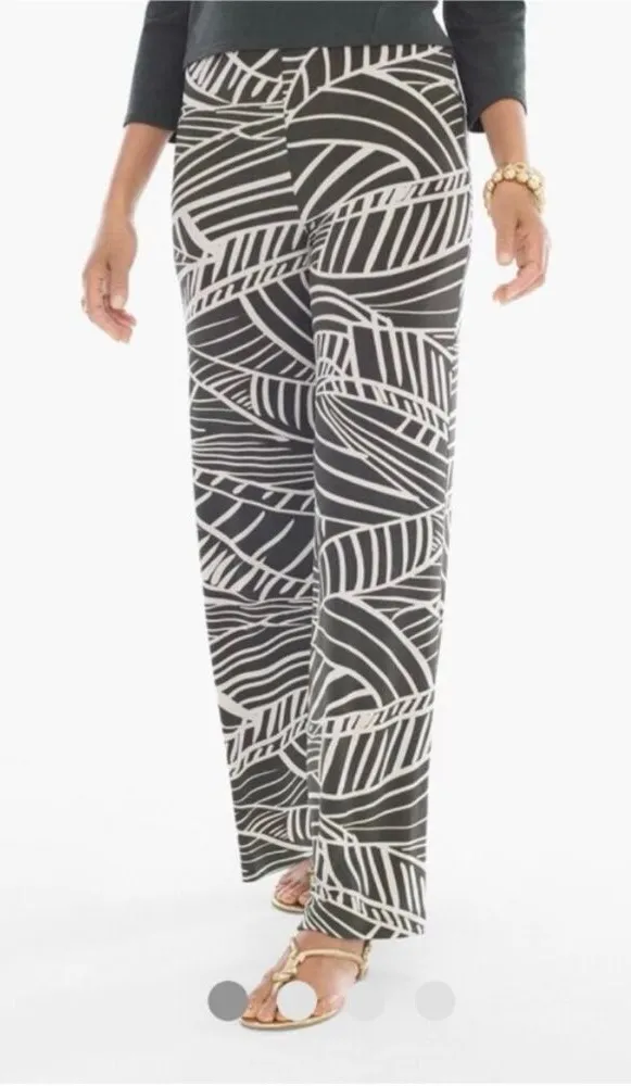 Chicos Travelers Abstract Leaf Print Knit Wide-Leg Pants Size 1 Regular Brand: Chicos Travelers... Show more