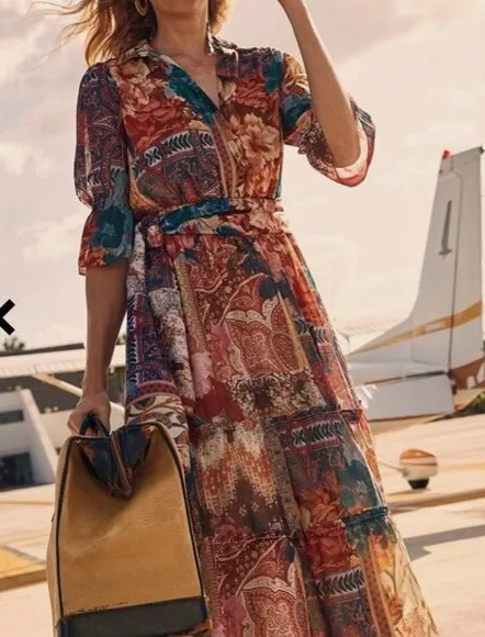 Chico's Woman's Tapestry Tiered Ruffle Floral Summer Midi Dress Sz 14 Red - $90 New With Tags - From Melissa