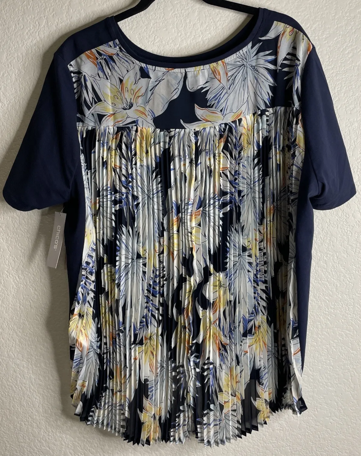 Chicos Womens 4 US XXL Navy‎ Blue Floral Knit Top Pleat Back NEW Preppy Beach - $35 New With Tags - From Andrea