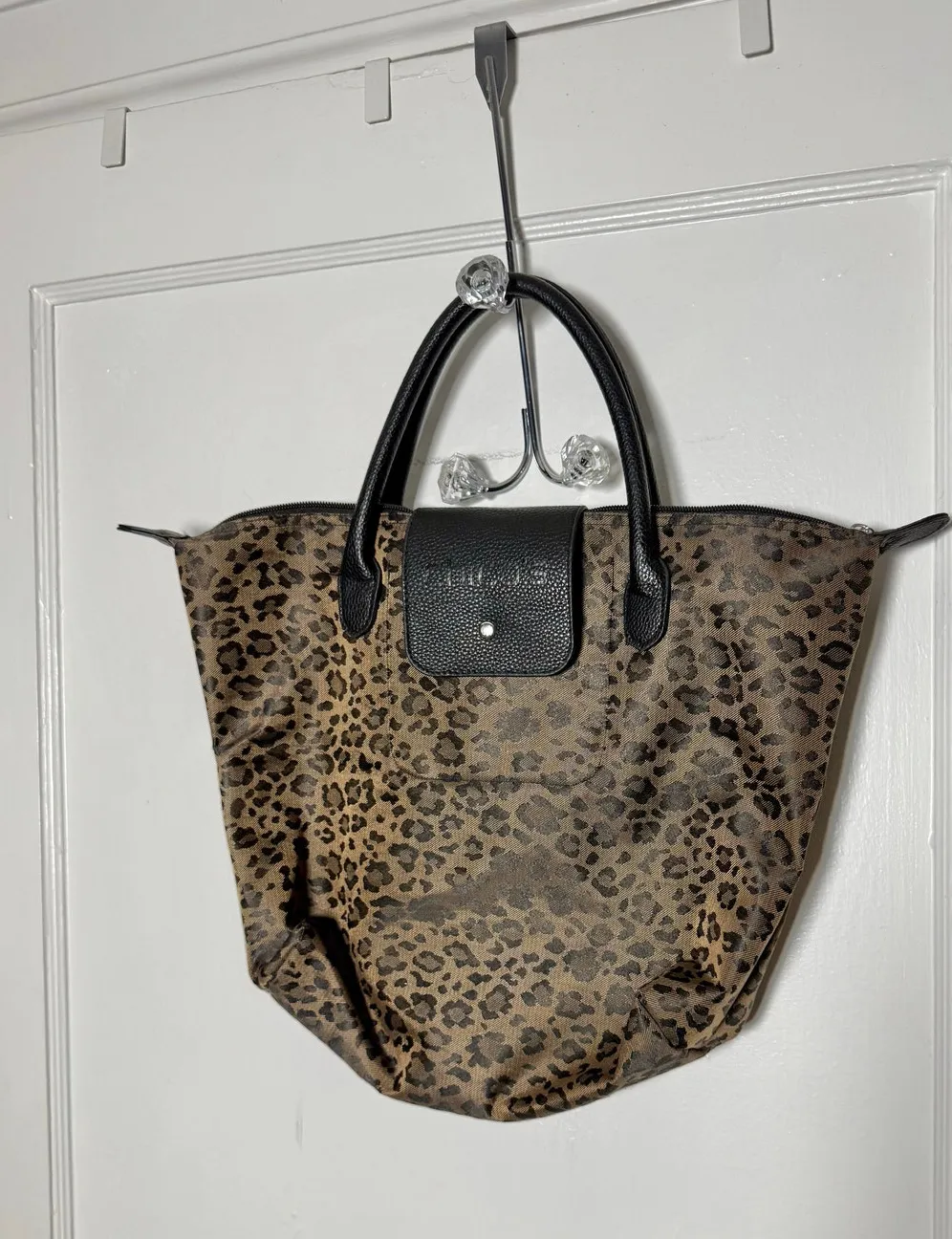 Excellent condition - no snags, holes, or stains Brown and black cheetah print tote bag purse Nylon... Show more