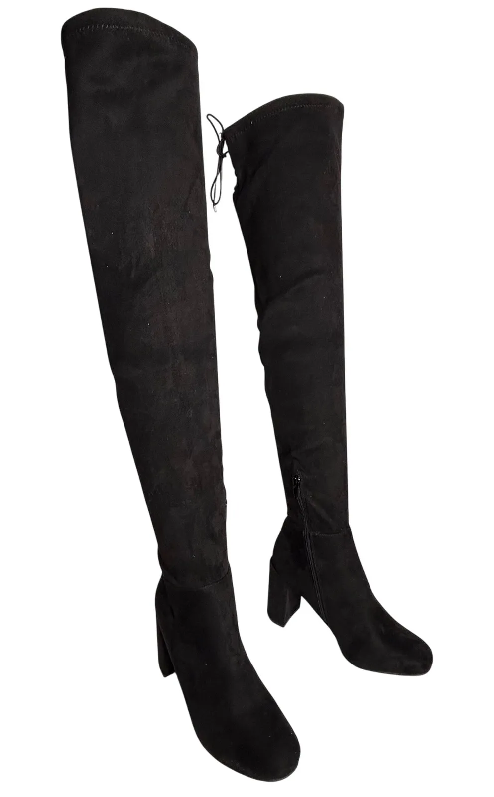 Chinese Laundry Black King Suedette Lace Up Back Chunky Heel Over The Knee Boots Size 8 These tall b... Show more