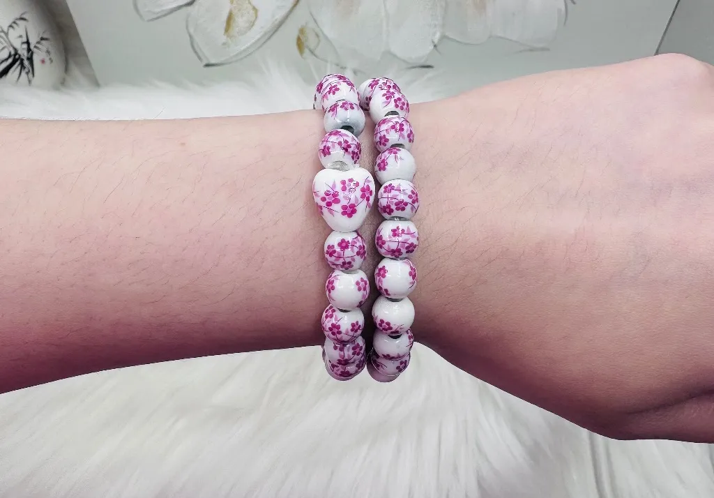 Chinese-Style Ceramic Floral Beaded Stretch Bracelet, 8mm ceramic beads Elastic bind You get two.... Show more