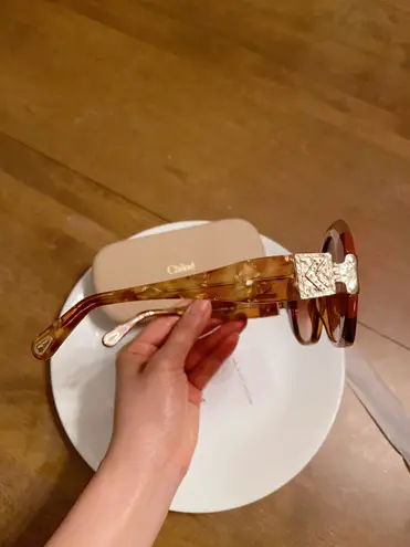 These Chloe patchwork-style sunglasses feature plastic frames and temples. Plastic lenses provide 100% UV protection. Intricate hinges. Signature brand name engraved at the temple tip eyelets. Most complementary face shapes: oval, square.... Made in Italy....