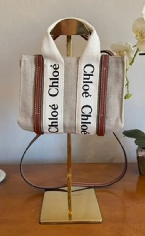 Chloé Mini Woody Tote in white and brown linen canvas with shiny calfskin trim. Features logo ribbon handles, a top handle, and a long strap for hand, shoulder, or crossbody carry. One main compartment fits a phone. Pre-owned in excellent condition with minor signs of wear. Size: 7.9" W x 5.5" H x 1.6" D Strap drop: 20.5" | Handle drop: 3.1" Retail Price: $880 Tags: Chloé Woody tote, mini tote bag, linen canvas bag, designer crossbody, Chloé shoulder bag, white and brown tote, sustainable designer bag, luxury mini bag Please review the photos and videos closely to assess the condition of the items. Upon shipment, all purchases are photographed and video-recorded to document the item’s condition. Please don’t hesitate to ask questions before making a purchase; all sales are final. Bids, offers, and buy-it-now purchases are binding. Reasonable offers are welcome—thank you for your interest!