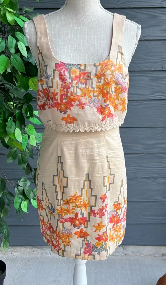 Free People Big Bang Multicolor Floral Aztec Metallic Sleeveless Mini Dress Size 2 Excellent Cond... Show more