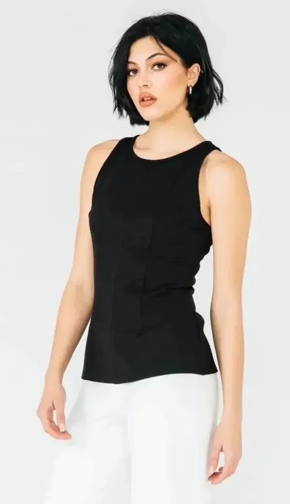 Classic Style! Incredible fabric feel! CHLOE KRISTYN BY BETTINA Jenni Ponte Knit Round Neck Tank wi... Show more