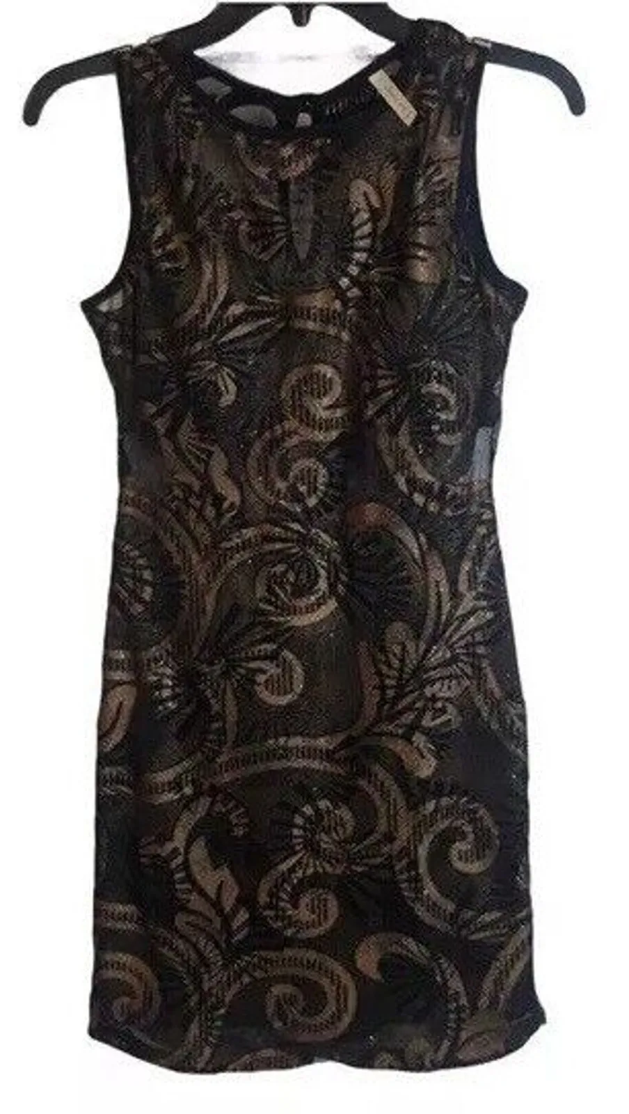 Elevate your evening look with this stunning gold glitter dress. The sheer mesh fabric and mini length make it perfect for a night out. The dress is made by Chocolate brand and is available in Women's size S. The dress is perfect for those who love metal theme and want to add some sparkle to their outfit. The dress features a beautiful gold color and glitter accents that give it a unique and elegant look. It is made of high-quality fabric which makes it comfortable to wear. This dress is perfect for any occasion and is sure to turn heads.