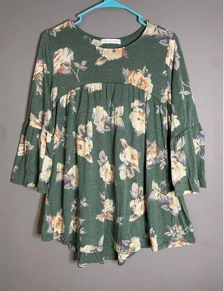 Chris & Carol Green Babydoll Bell Sleeves Top Size Large - $15 - From Nicole